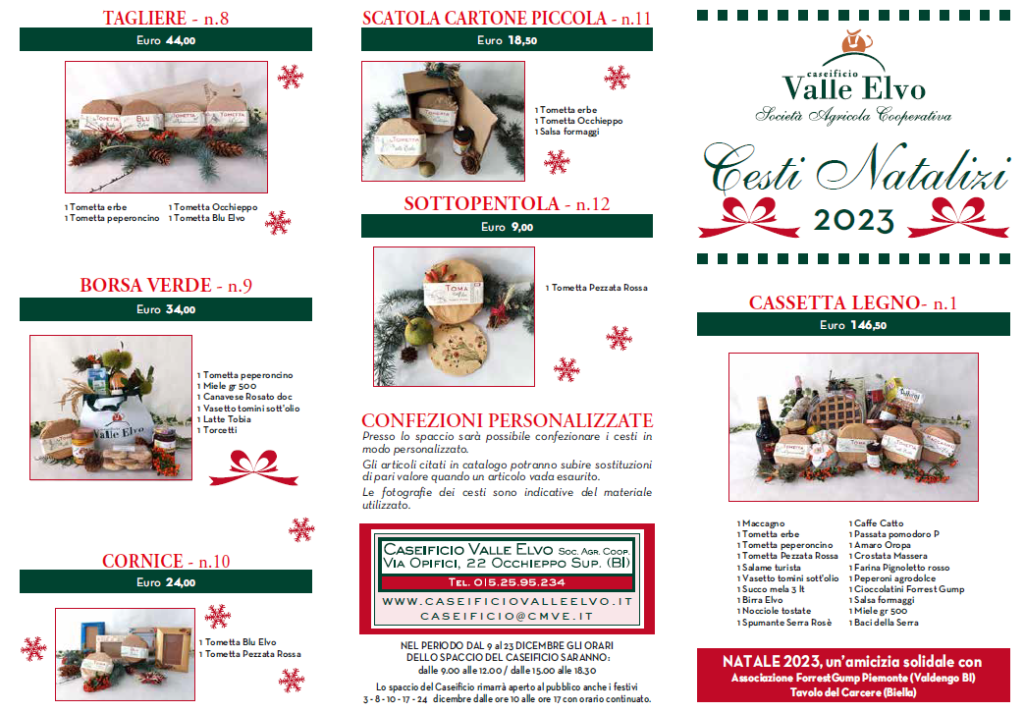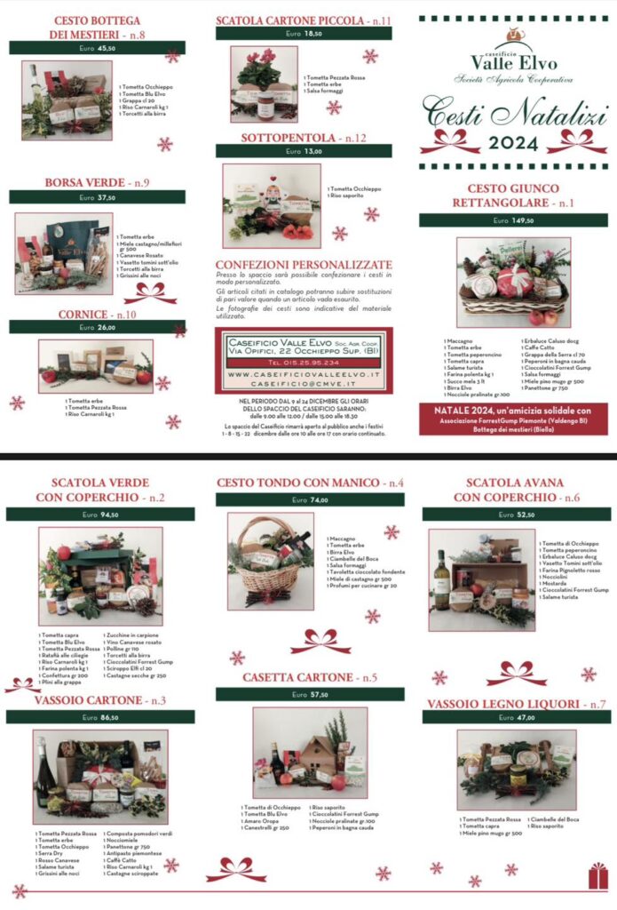 Ritorna la proposta di Natale del Caseificio: un’idea regalo da non perdere per un pensiero di qualità e dal sapore genuino del territorio biellese e in particolare della Valle Elvo.